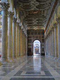 is begraven. Op 16 juli 1823 veroorzaakt een onvoorzichtige schilder een felle brand, waarbij alleen het dwarsschip gespaard blijft. Paus Leo XII laat direct met de bouw van een nieuwe kerk beginnen en krijgt daartoe giften uit gehele wereld. Ook van koning Willem II uitNederland ontvangt hij persoonlijk geld. De kerk is op de St. Pietersbasiliek na de grootste van Rome. Het dak van de robuuste en hoekige kerk wordt gedragen door een woud van 80 zuilen, gehouwen uit de Simplon. Mooi is de binnenhof met de granieten zuilen.