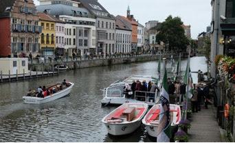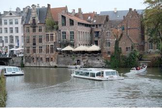 Om 14.00 uur die middag was de planning, of een wandeling onder begeleiding of een rondvaart op de Leie door het middeleeuwse centrum van Gent. Wij, Rosalien en ik, hadden ons opgegeven voor rondvaart om de dood eenvoudige reden; het regende en de boot was overdekt. Deze tocht ging langs de oude gildenhuizen met die markante trapgevels. Indrukwekkend!